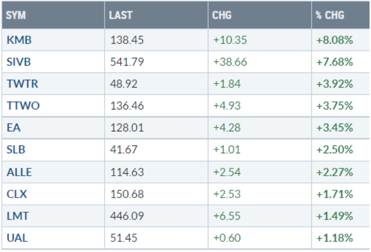 Analisi azioni: Top 10% Market Movers S&P500 22/04/2022