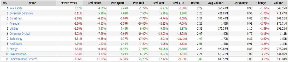 -Real Estate top sector con un RoC_5,D del +0.57%