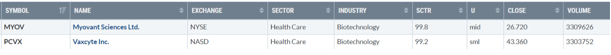 Di seguito i titoli che hanno creato un nuovo massimo a 52 settimane, e stanno sovraperformando l’indice di riferimento S&P500.