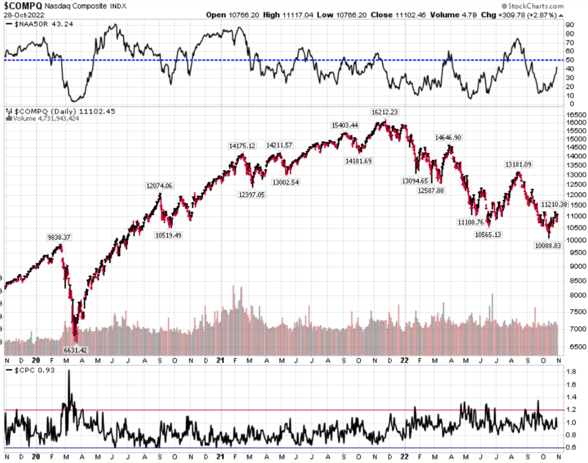 Divergenza $NAAR50 vs $COMP: aumento della percentuale di titoli che prezzano sopra la SMA50 rispetto alla settimana precedente, in convergenza con il rialzo dell’indice.