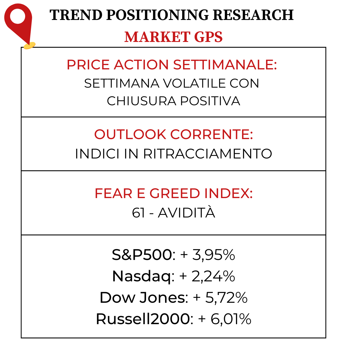 Settimana volatile, ma con cambio di passo decisivo nelle ultime ore di contrattazione da parte del mercato, che ha prima subito i sell-off su MSFT, META, GOOGL e AMZN, ma ha poi ritrovato fiducia e slancio sulla volata di AAPL.