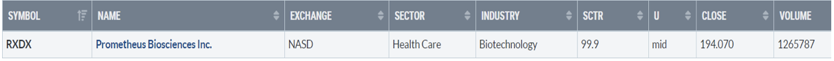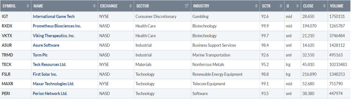 Di seguito i titoli che hanno creato un nuovo massimo a 52 settimane, e stanno sovraperformando l’indice di riferimento S&P500.