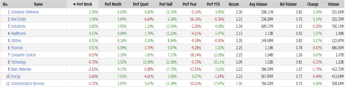 -Consumer Defensive top sector con un RoC_5,D del +1.59%