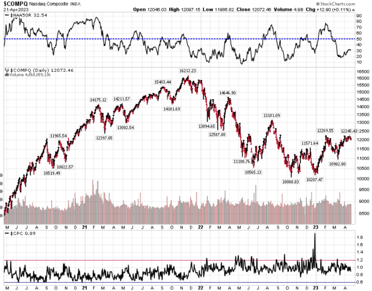 Divergenza $NAAR50 vs $COMP: aumento della percentuale di titoli che prezzano sopra la SMA50  rispetto alla settimana precedente, in divergenza con il calo dell’indice.