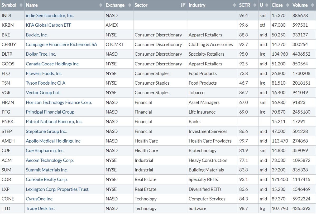 Di seguito i titoli che hanno creato un nuovo massimo a 52 settimane, e stanno sovraperformando l’indice di riferimento S&P500.