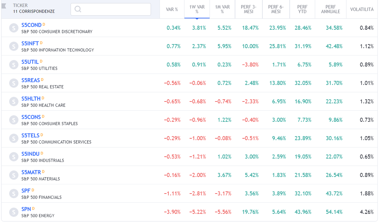 ⭕Weekly Performance Settori & Top10 Industrie 20-11-2021