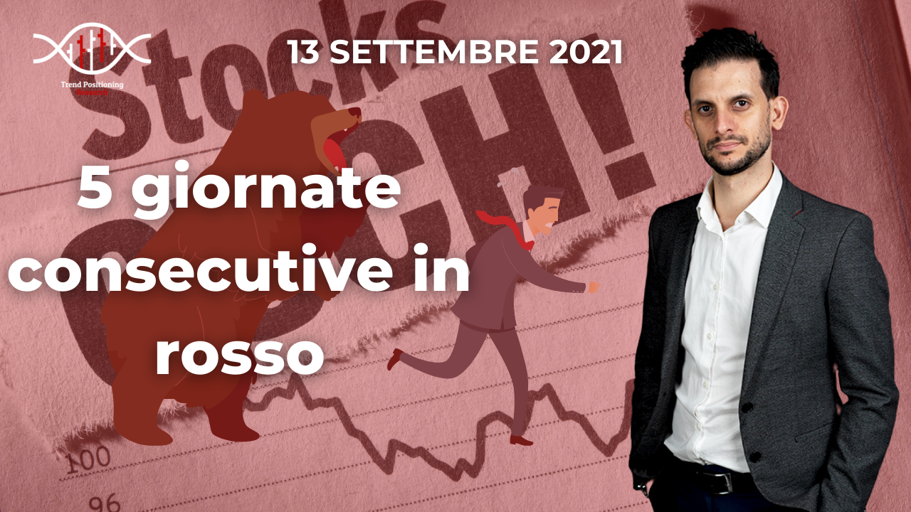Analisi e Video Analisi del mercato azionario – 13 Settembre 2021 Growth stock in ritracciamento MA portafogli in positivo (Clicca sull’immagine qui sotto per vedere la video analisi) Analisi del mercato: azionario USA PANORAMICA Ritracciamento e chiusure prossime ai minimi della settimana per i principali indici. Il Dow ha lasciato sul terreno un -2.15%, […]