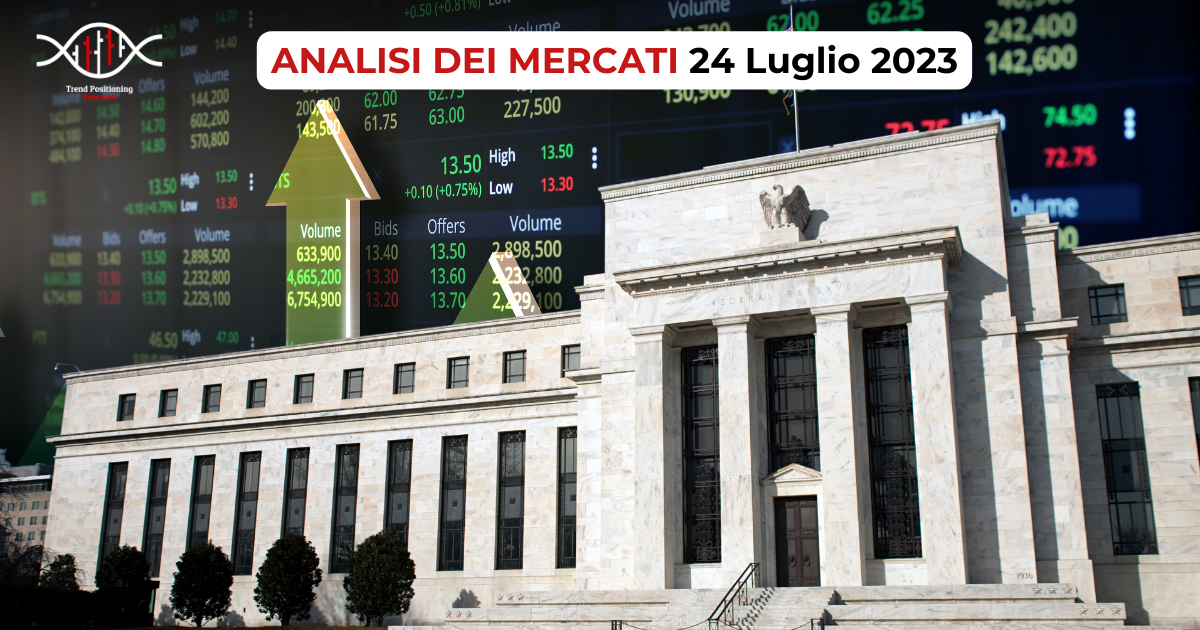 Analisi del mercato azionario24 Luglio 2023 Rotazione sul Dow, trimestrali e meeting FED in arrivo: prova del fuoco per il rally di mercato. Analisi del mercato: azionario USA PANORAMICA Rotazione a favore del Dow Jones durante la settimana, che ha chiuso con la performance migliore fra i quattro indici, seguito dall’S&P500. Nasdaq in negativo […]