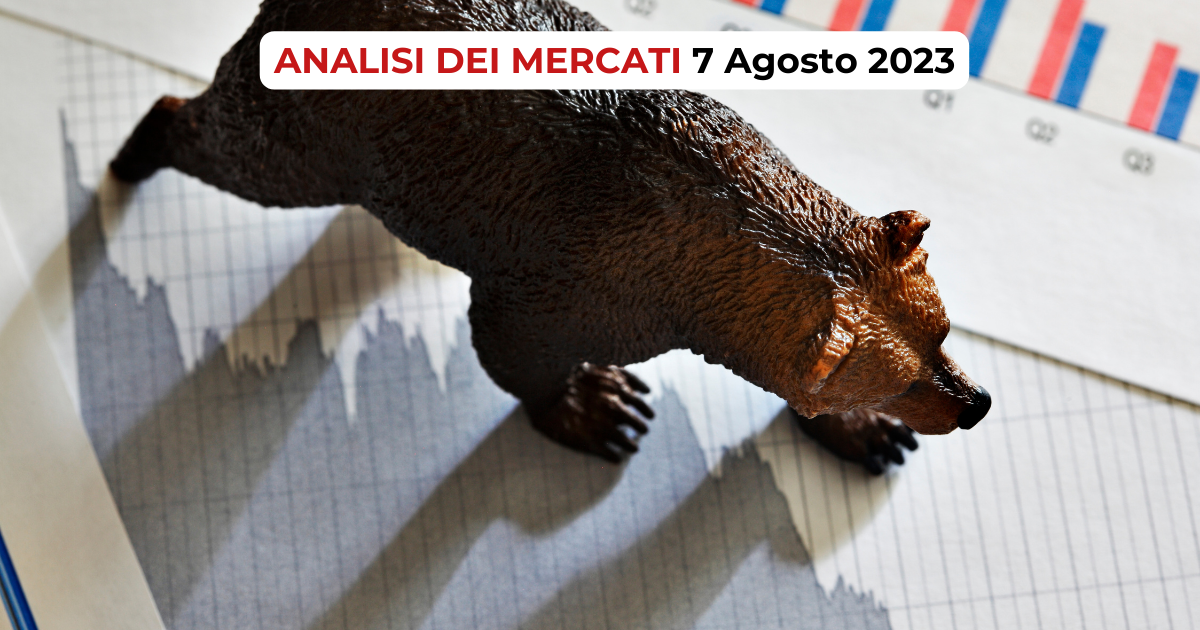 Analisi del mercato azionario7 Agosto 2023 Gli orsi escono dalle tane: indici in rosso. Analisi del mercato: azionario USA PANORAMICA Mercati ancora sotto pressione, con il Nasdaq maglia nera, penalizzati dal rialzo dei rendimenti del T-10yrs. Le tante notizie macro e fondamentali (trimestrali) non hanno certo aiutato a rendere la situazione più chiara. L’ultima […]