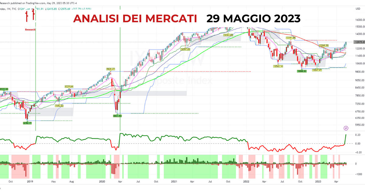 Analisi e Video Analisi del mercato azionario29 Maggio 2023 Weekly SMART EXIT verde sul Nasdaq: è la volta buona? Analisi del mercato: azionario USA PANORAMICA Ancora una volta sono il Nasdaq e il settore tecnologico più in generale a guidare il mercato, ampliando la divergenza con S&P500 e soprattutto Dow Jones e Russell2000. La […]