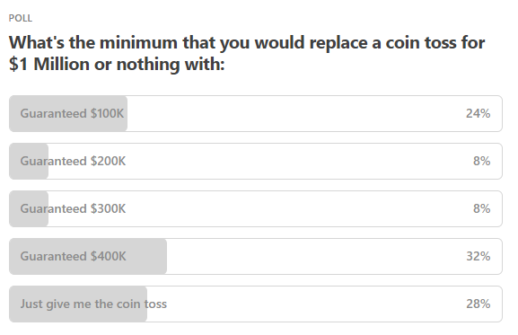 “Qual è il minimo con cui sostituirebbe il lancio di una moneta per 1 milione di dollari o niente”