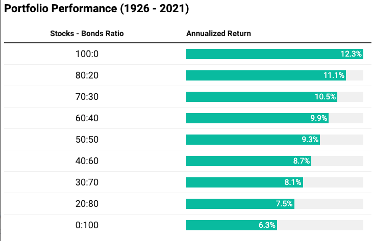 Dopotutto, un recente studio di Vanguard ha dimostrato che negli ultimi circa 100 anni le azioni hanno costantemente superato le obbligazioni e qualsiasi allocazione aggiuntiva alle obbligazioni ridurrà il rendimento complessivo.
