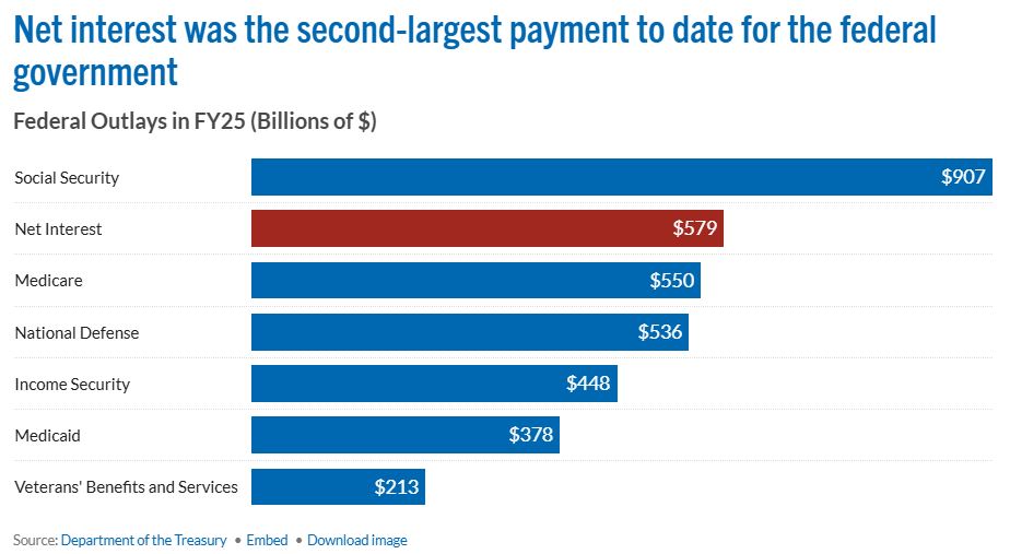 Tuttavia, il downgrade è arrivato in un momento di forte attrito politico: il disegno di legge di Trump da 4.000 miliardi ha inizialmente diviso i repubblicani sulle priorità fiscali. I costi degli interessi ora assorbono il 10% delle entrate federali e sono destinati a raddoppiare entro il 2035. Con tassi fermi sopra il 4%, il rifinanziamento potrebbe presto superare costantemente la spesa per la difesa.