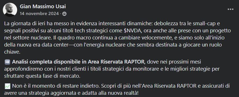 Nota: il Trend Positioning Invest conduce ricerche e formula conclusioni operative per il proprio Portafoglio Tematico Tecnologico THÉMA . Le informazioni condivise con i lettori non garantiscono performance delle azioni né costituiscono consulenza finanziaria. È consigliabile consultare il proprio consulente finanziario prima di investire.Vi invitiamo a fare le vostre analisi prima di acquistare azioni delle società eventualmente citate nei nostri canali.