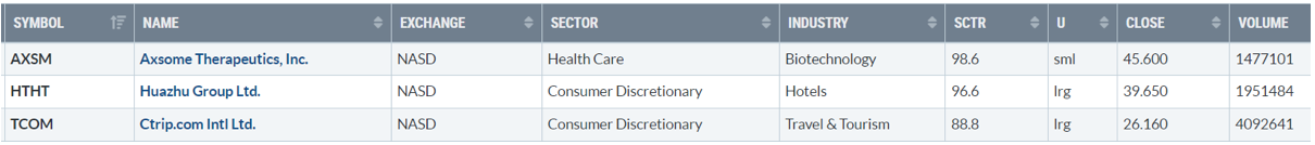 Di seguito i titoli che hanno creato un nuovo massimo a 52 settimane, e stanno sovraperformando l’indice di riferimento S&P500.