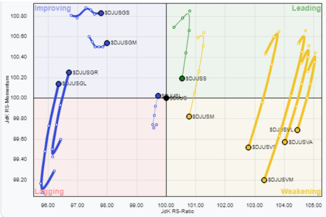 Il breadth del mercato infatti è ancora debole, anche se in miglioramento. Bene l’allargamento della leadership all’interno del settore sanitario (in particolare nell’industria biotech), e la tenuta dell’industria del solare e degli EV.