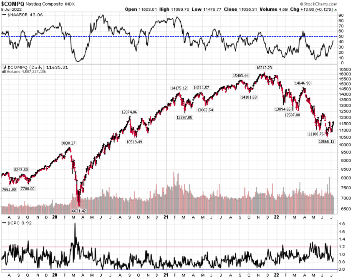 Il Nasdaq ha chiuso le ultime cinque sessioni in positivo, ma con volumi sotto la media con le quotazioni bloccate dall’area di resistenza sulla SMA50D e un precedente gap- down.