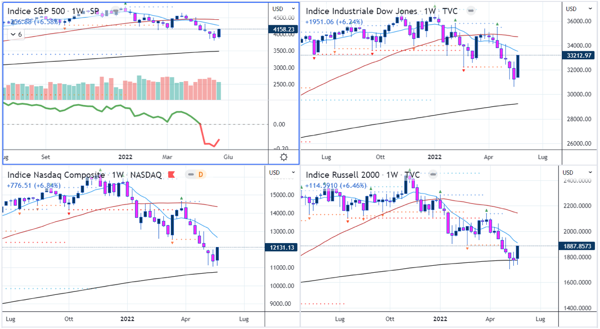 L’inizio della settimana non è stato semplice, con il Nasdaq che ha segnato un nuovo minimo a 52 settimane Martedì. Nelle sessioni successive gli indici hanno però rimbalzato, chiudendo largamente in positivo.