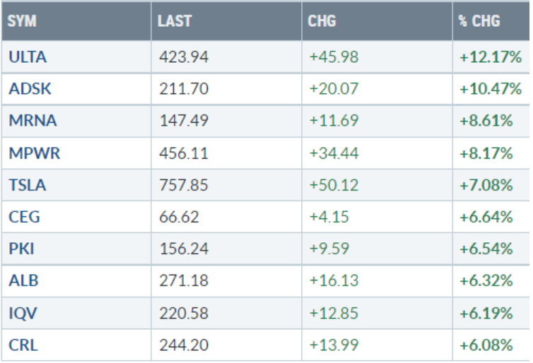 Analisi azioni: Top 10% Market Movers S&P500 27/05/2022