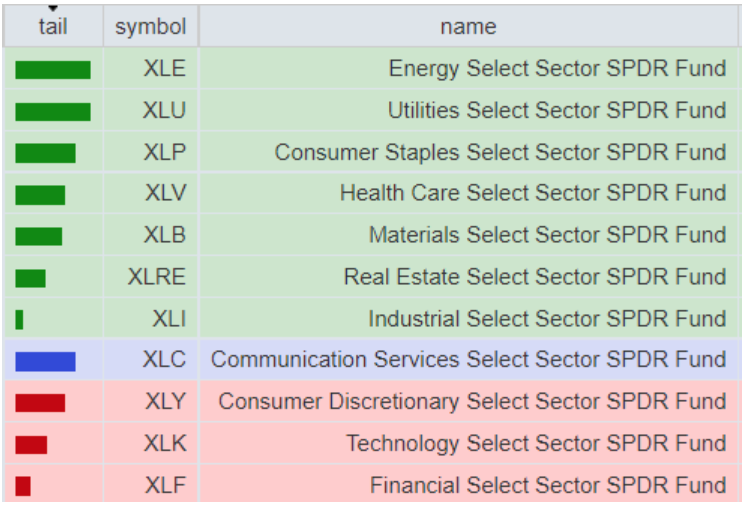 -Healthcare bottom sector con un RoC_5,D pari a +2.95%