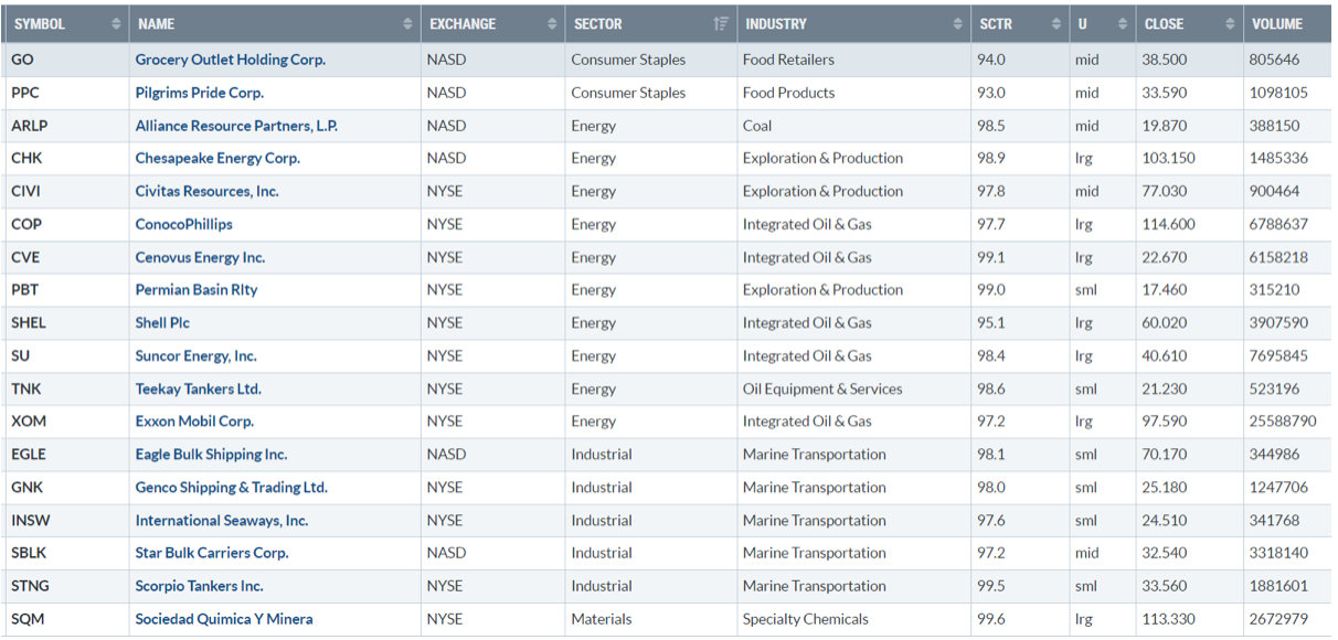 Di seguito i titoli che hanno creato un nuovo massimo a 52 settimane, e stanno sovraperformando l’indice di riferimento S&P500.