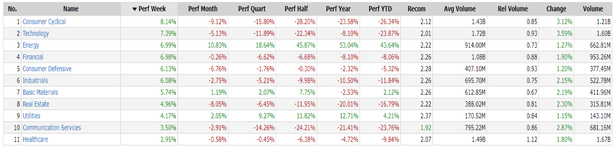 -Consumer Cyclical top sector con un RoC_5,D del +8.14%