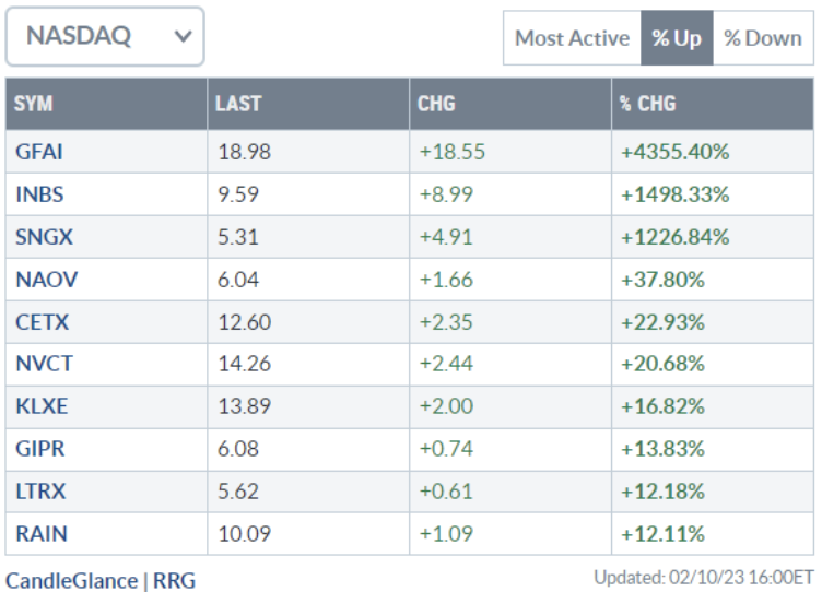 Analisi azioni: Top 10% Market Movers S&P500 10/02/2023