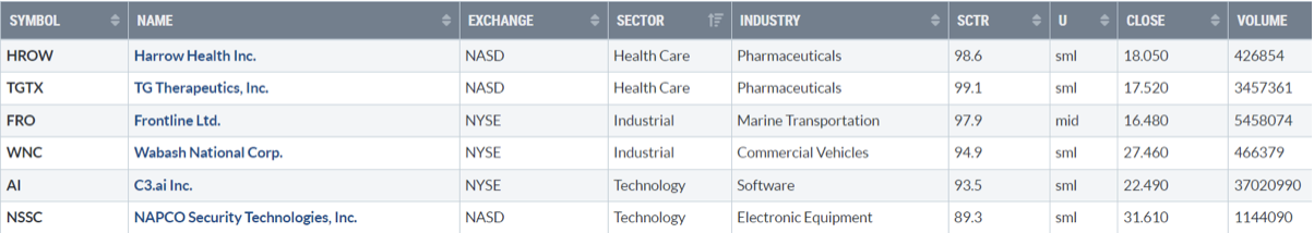 Di seguito i titoli che hanno creato un nuovo massimo a 52 settimane, e stanno sovraperformando l’indice di riferimento S&P500.