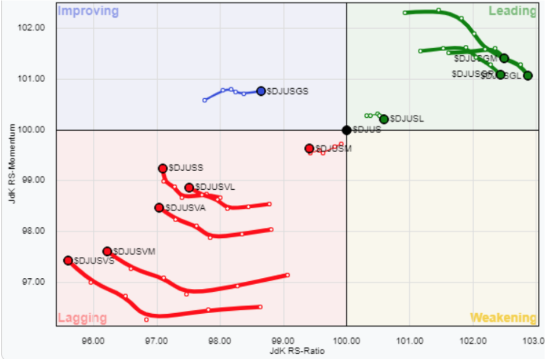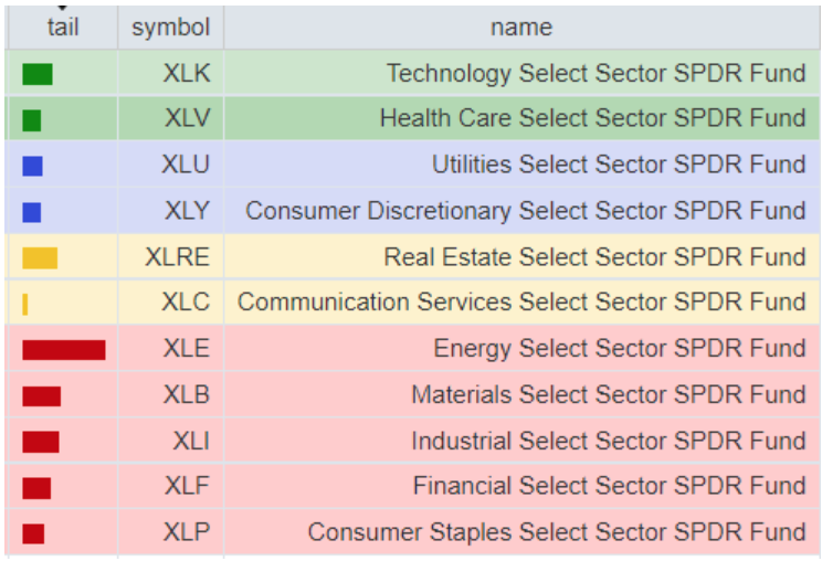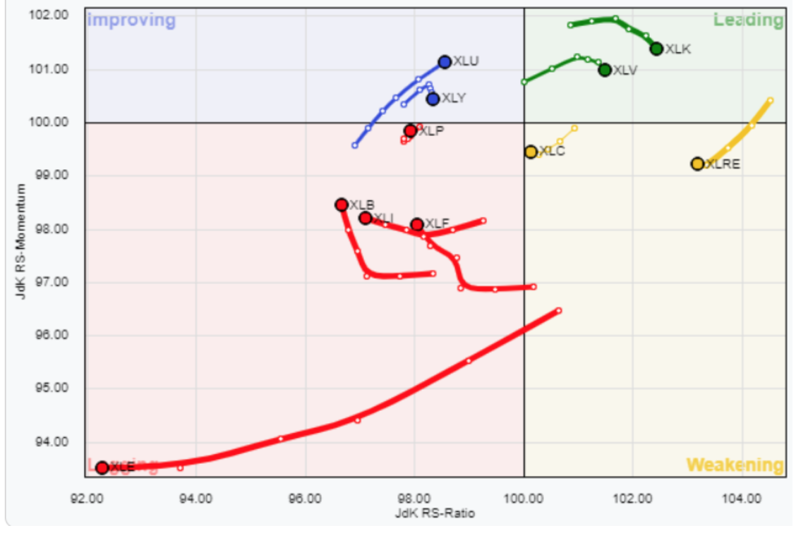 LAGGING: Materials, Industrial, Consumer Staples, Energy, Financial