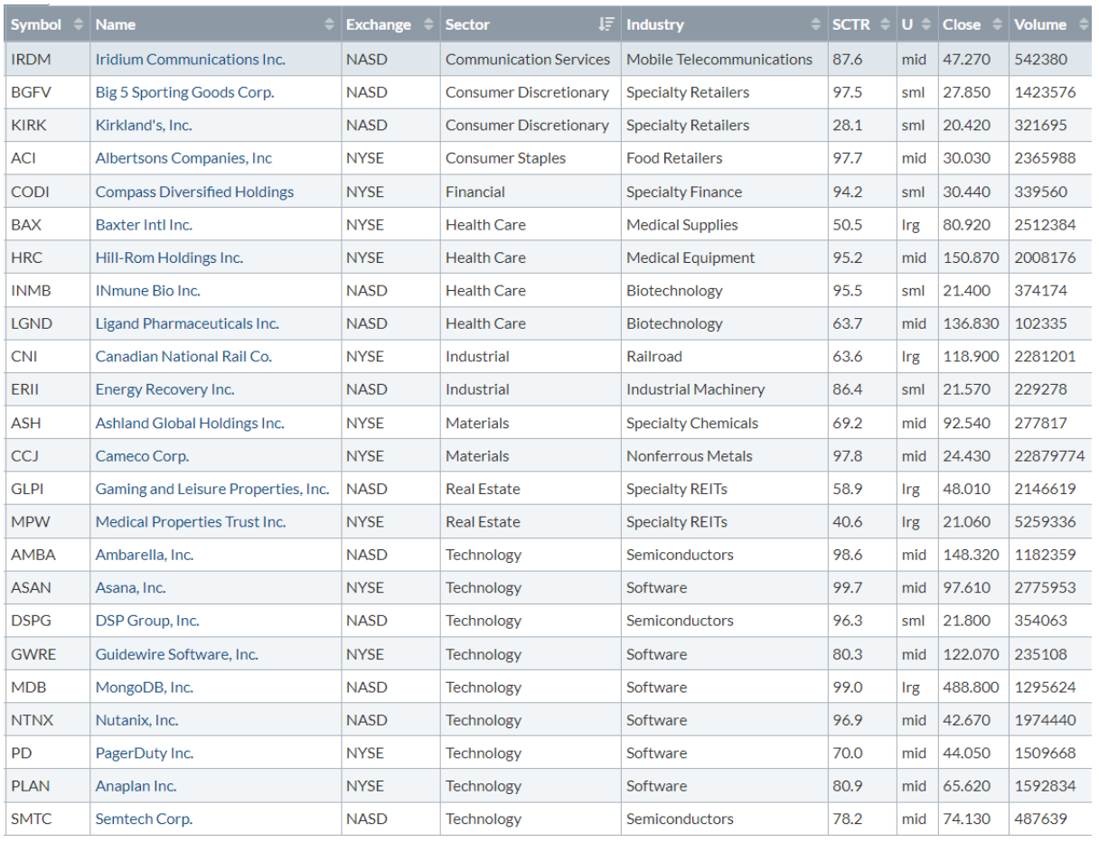 Di seguito i titoli che hanno creato un nuovo massimo a 52 settimane, e stanno sovraperformando l’indice di riferimento S&P500.
