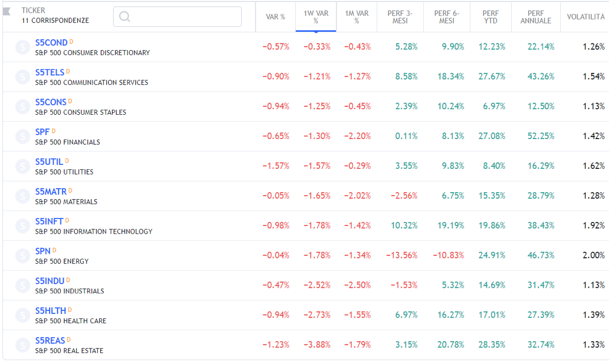 Weekly Performance Settori & Top10 Industrie 11-09-2021