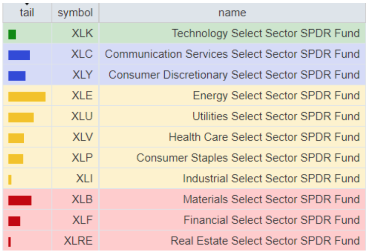 -Technology  bottom sector con un RoC_5,D pari a -5.00%