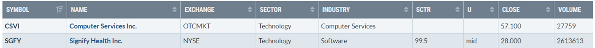 Di seguito i titoli che hanno creato un nuovo massimo a 52 settimane, e stanno sovraperformando l’indice di riferimento S&P500.