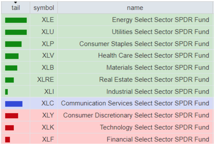 -Consumer Defensive bottom sector con un RoC_5,D pari a -8.70%