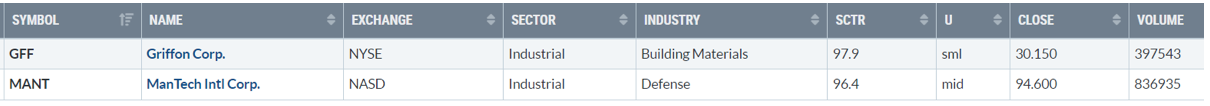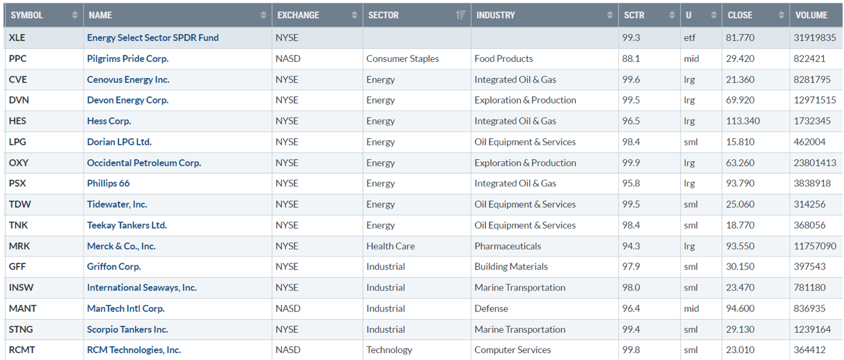 Di seguito i titoli che hanno creato un nuovo massimo a 52 settimane, e stanno sovraperformando l’indice di riferimento S&P500.