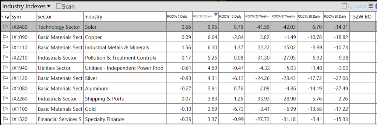 -Basic Materials top sector con un RoC_5,D del +2.19%