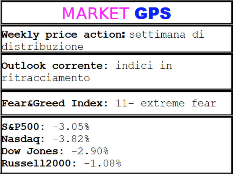 Nel caso non fosse ancora chiaro, ti ripeto che siamo in un mercato RIBASSISTA, pertanto i setup long a basso rischio sono praticamente assenti. Per ora focalizzati sull’aggiornamento delle watchlist e su eventuali operazioni short, anche con l’utilizzo di ETF, ricordando sempre però che questo mercato spesso “vive alla giornata”, pertanto appena possibile porta profitti a casa.