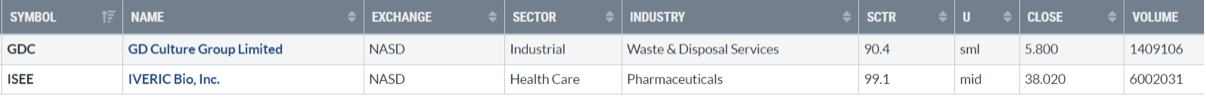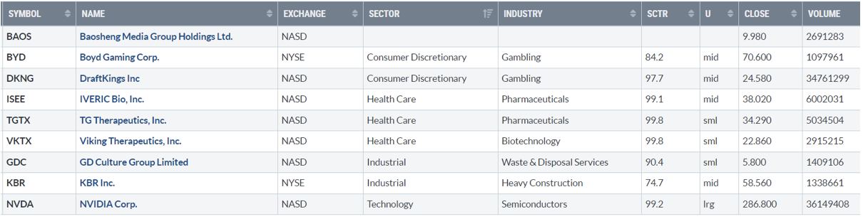 Di seguito i titoli che hanno creato un nuovo massimo a 52 settimane, e stanno sovraperformando l’indice di riferimento S&P500.