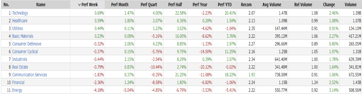 -Technology top sector con un RoC_5,D del +0.69%