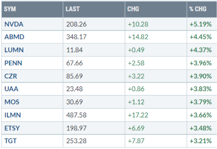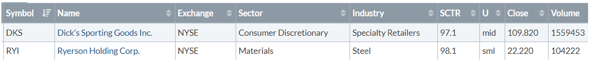 Di seguito i titoli che hanno creato un nuovo massimo a 52 settimane, e stanno sovraperformando l’indice di riferimento S&P500.