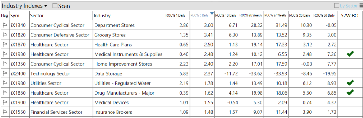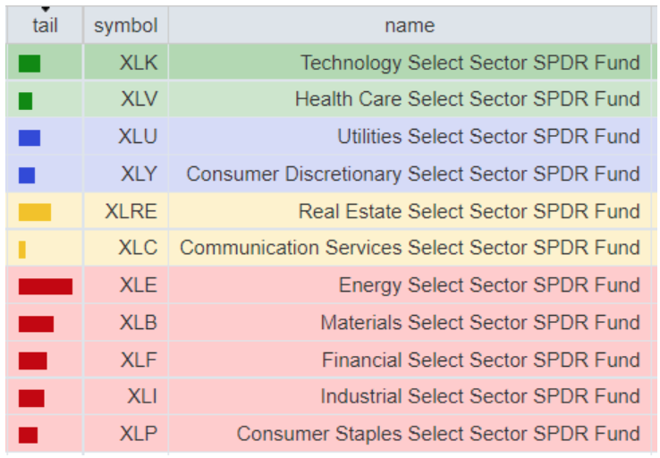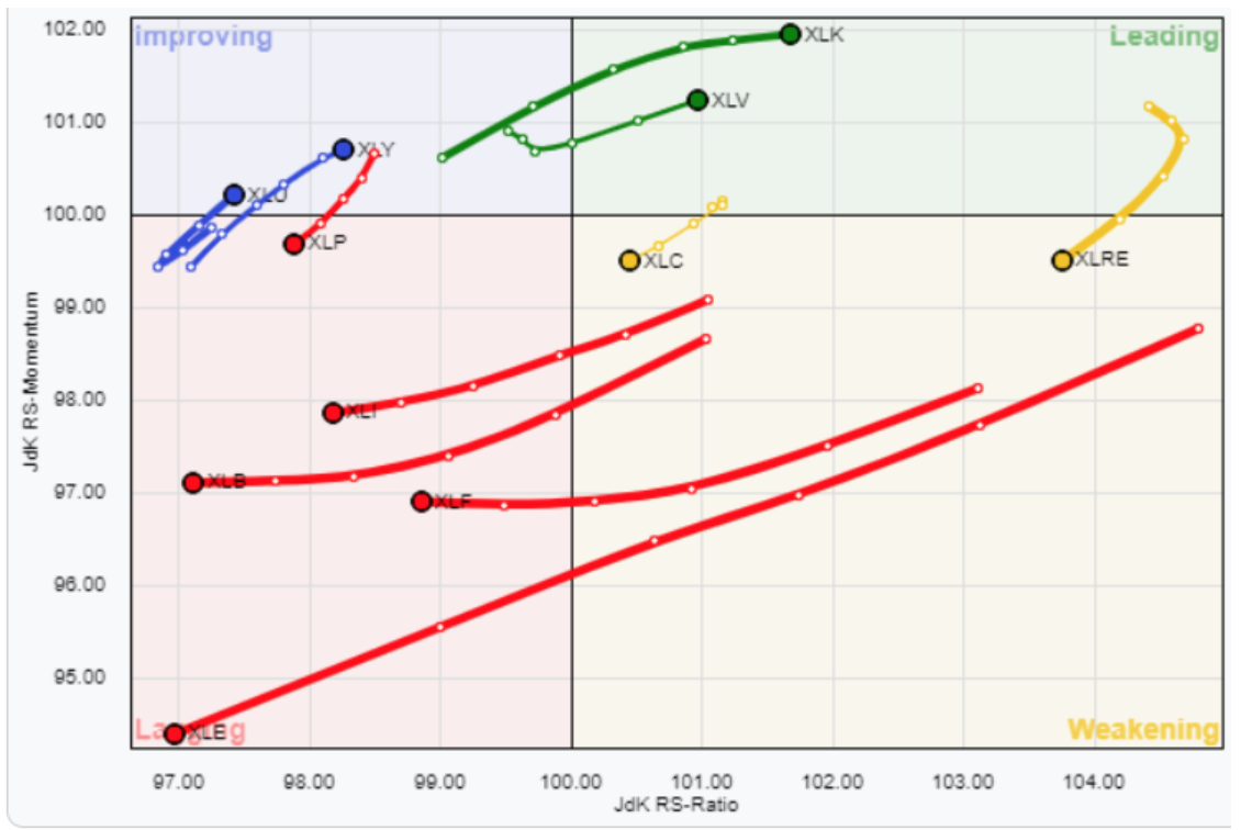 LAGGING: Materials, Industrial, Consumer Staples, Energy, Financial