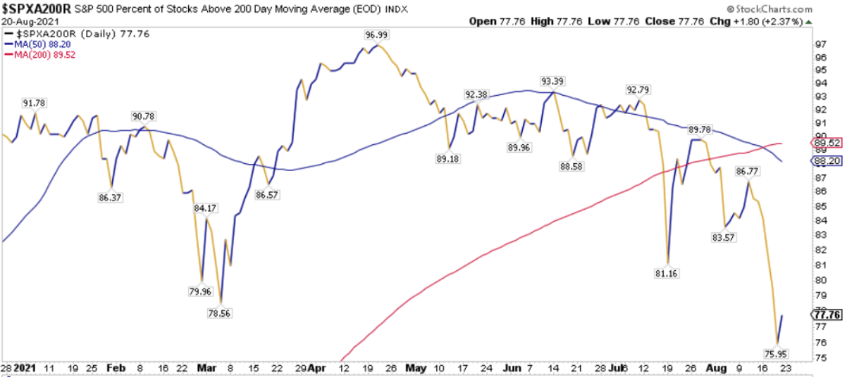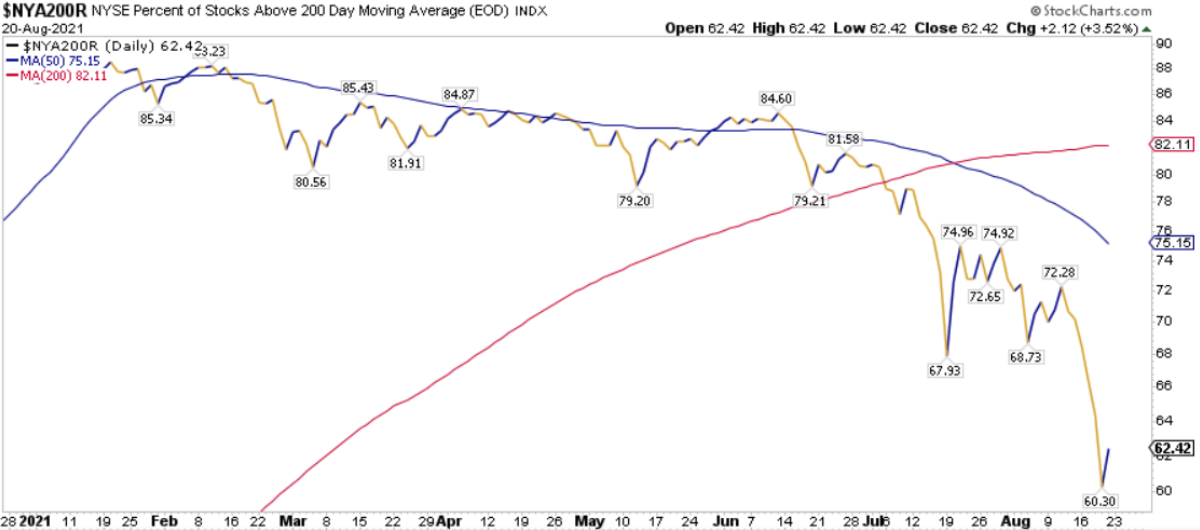 ⭕ Percentuale Titoli > SMA200D 21/08/2021