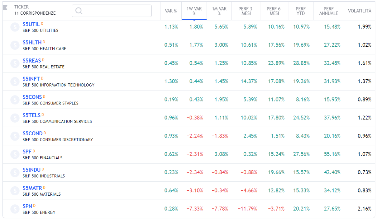 Weekly Performance Settori & Top10 Industrie 21-08-2021