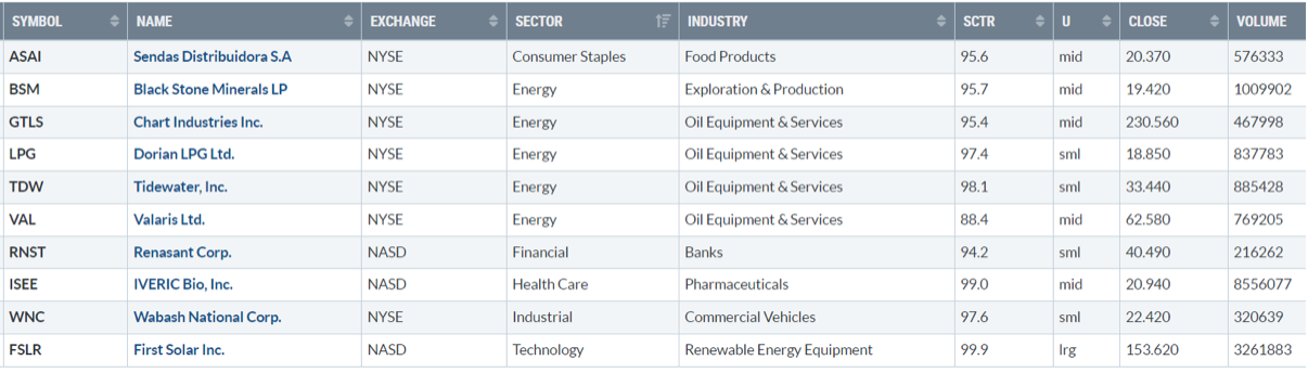 Di seguito i titoli che hanno creato un nuovo massimo a 52 settimane, e stanno sovraperformando l’indice di riferimento S&P500.