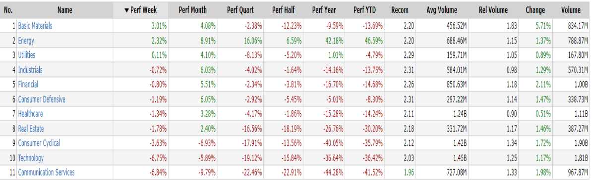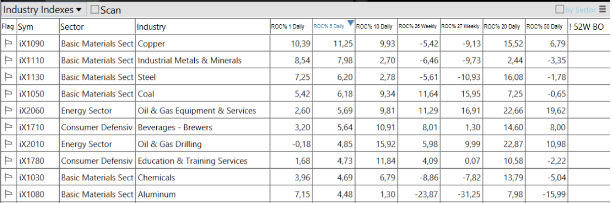 -Basic Materials top sector con un RoC_5,D del +3.01%