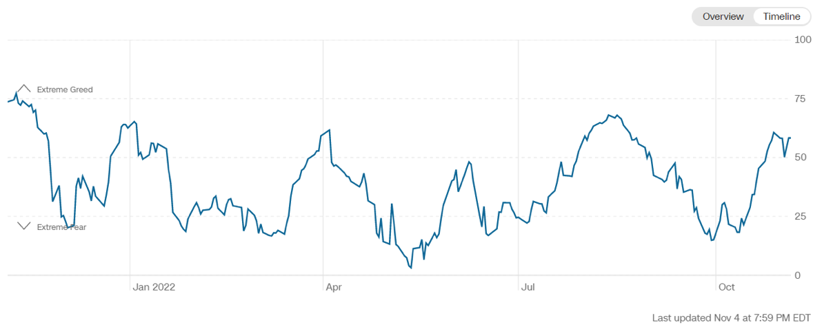 Il Fear&Greed Index scende a quota 58, indicando l’ avidità come sentiment prevalente. Una settimana fa il valore era pari a 60.