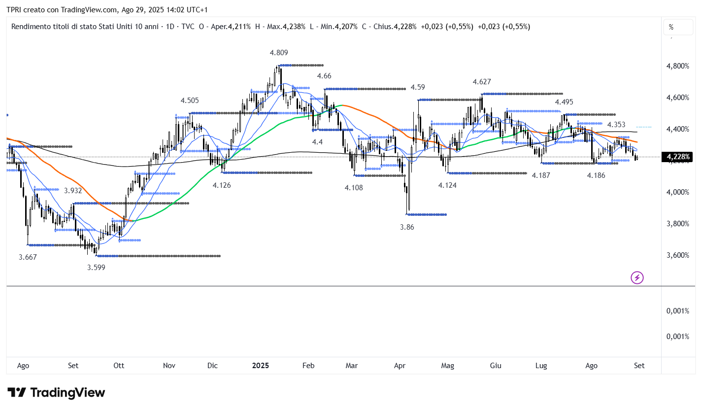 Tuttavia, l’inflazione si è attenuata e la Federal Reserve ha reagito riducendo i tassi di interesse, portando il tasso dei fondi federali a un intervallo compreso tra il 4,25% e il 4,5%, e con grande ritardo probabilmente taglierà al prossimo FOMC di settembre.
