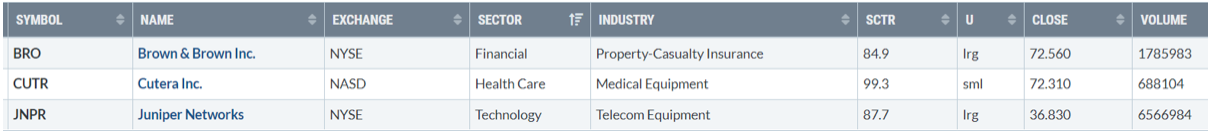 Di seguito i titoli che hanno creato un nuovo massimo a 52 settimane, e stanno sovraperformando l’indice di riferimento S&P500.