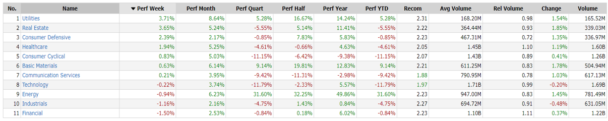 -Utilities top sector con un RoC_5,D del +3.71%