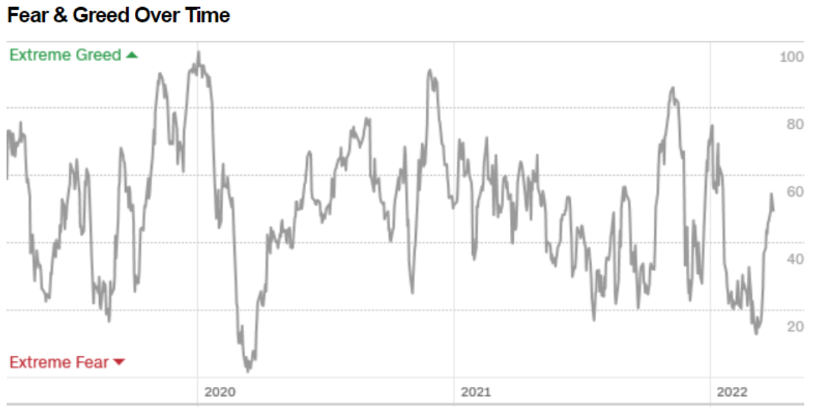 Il Fear&Greed Index sale a quota 49, indicando equilibrio tra paura ed avidità. Una settimana fa il valore era pari a 46.